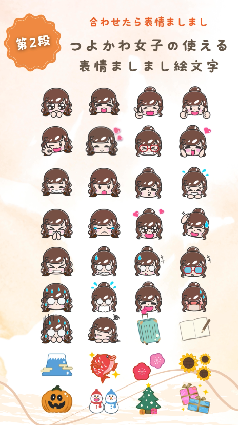 第2弾はさらに表情豊かでバリエーション増えて使える絵文字にしました!