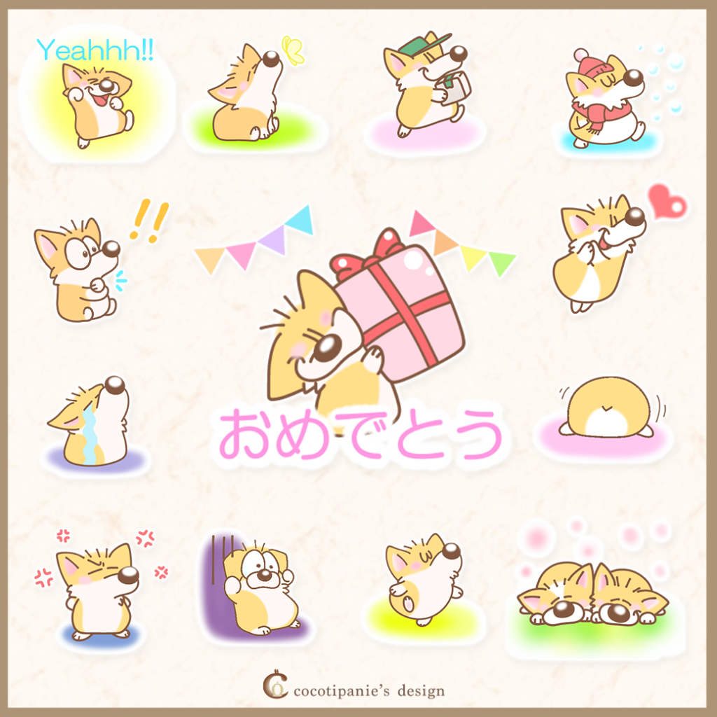 2014年〜2017年にPhotoshopで制作したコーギー・テナさんのスタンプです。